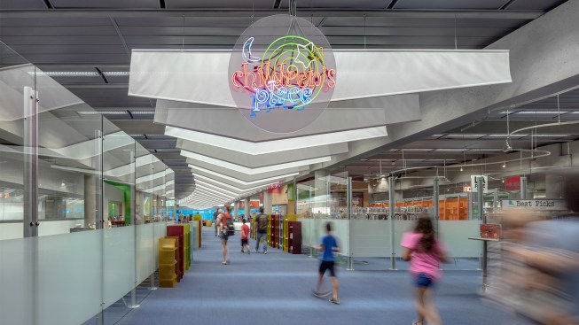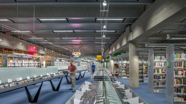 BruderDWLarchitects worked closely with international engineering firm Arup Group (then Ove Arup & Partners) to make the library a regional hallmark of green design, aiming to create an environmentally conscious structure before the LEED rating system officially launched in 1998. The project, which boasts high-efficiency mechanical and lighting solutions, 12-inch-thick precast concrete walls, solar-shaded glazing systems, thermal mass temperature control, and gas chillers, received a LEED-EB (LEED for Existing Buildings) Silver rating in 2015, a decade after its completion.