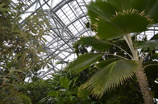 The five-story Lena Meijer Tropical Conservatory, built of hot-dip galvanized steel, houses a waterfall, rock landscapes, and many exotic plants.