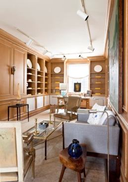 D.C.-based Nestor Santa-Cruz designed the library off the family room. Santa-Cruz, who is also a design director at Gensler, painted the walls to mimic wood and placed a Hans Wegner table against the far wall.