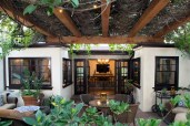 Nestled in the Hollywood Hills, this Rancho-style home first built in 1925 received an outdoor living upgrade using Redwood timbers.