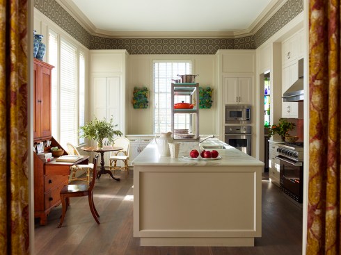 So the étagère is just a shelf. I think it’s the French word for ladder. It’s just a shelf unit. I just think in any kitchen I design, it’s good to have the chef be able to have his area—well, not the chef, the cook, me—without having people circulating through that area. So in a kitchen, I prefer to have one side for a cook, one side for everyone else. So it’s not that I didn’t want people in the kitchen, it’s just that it sort of organizes the kitchen to have an island in the middle. And the étagère allows you to have all your heavy pots and pans out, instead of having to kind of bend and put them under. It’s just sort of an ergonomic trick that I learned from designing a restaurant kitchen years ago.
