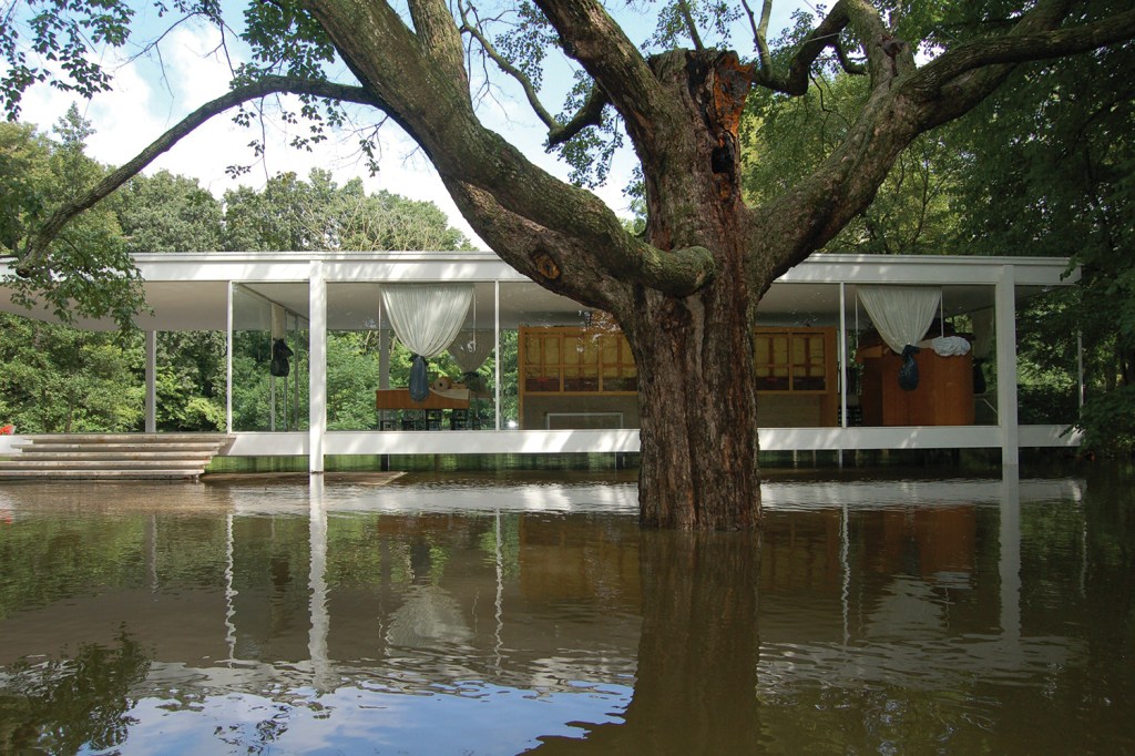 Since its completion in 1951, the Farnsworth House, situated 58 miles southwest of Chicago in Plano, Ill., has been susceptible to flooding. Its quiet elegance, delicately placed in communion with its surroundings, was designed by the German architect Ludwig Mies van der Rohe and built next to the tempestuous Fox River. Knowing his site, Mies envisioned floodwaters passing underneath the home’s steel-column stilt supports, used to poetic effect to raise the interior.