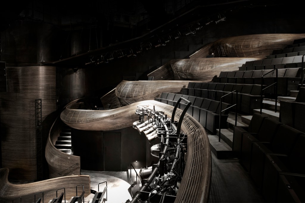 For the renovation of Atlanta’s Tony Award– winning Alliance Theatre—the first significant update since its founding in 1968—the design team found inspiration for a grand gesture in the work of artist Matthias Pliessnig, whose lattice-work benches made from reclaimed wood are a testament to form and physics. Working hand-in-hand, the trio of architect, artist, and fabricator upended the traditional linear project delivery process to highlight the artistry of handcrafted steam-bent solid oak pieces.