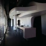 Vera Wang Boutique – Soho, NY Customers enter as performers on a stage, stepping into the elevated, double-height proscenium at the front of the store. The spatial sequence unfolds down a full-width, white Corian grand stair, which transitions into the more intimate display and changing area at the rear of the space.