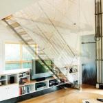 Counterbalanced Steel Stair – Bozeman, Montana This small footprint infill house called for a high economy of flexible space, inspiring a counterbalanced stair, which could be manually pulled down or pushed up as required with a minimum of physical effort.