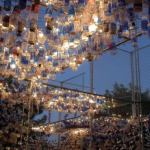 Cup City – Austin, Texas Miles of Rent-A-Fence panels are used during the Austin City Limits festival to divide and control crowds. In Cup City, both purpose and panel are turned on end, attracting people and fostering interaction, as well as creating shade and quiet respite.