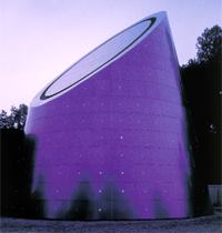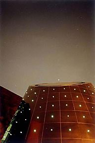 The passageway-defined almost entirely by the fiber optic strands that stretch its length-draws on the lighting expression of the facade. (The bronze-colored metal skin with its fiber optic pinpoints briefly appears inside, where the conical planetarium connects to the exhibit hall.) The exterior, however, represents much more of a give and take between materials and lighting: ‘During the day, it is a solid object, with no sense of light,’ says Westlake. ‘You don’t see the fiber optics at all. It’s as if the thing were machined out of poured bronze. At night, however, you have absolutely no sense of the bronze metal; you only read the shape of the object by the light-sort of in the same way the constellations are read.’ For the planetarium, facade material and lighting are each inherently dependent on, and yet distinctly separate from, the other, like an architectural Dr. Jekyll and Mr. Hyde; when one is present, the other is absent, and yet it is the characters’ coexistence that forms the whole.