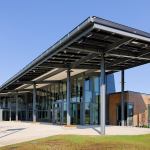 Portland Community College (PCC) has an institutional goal to reduce its greenhouse gas emissions by 80 percent by 2050, and the new Newberg Center serves as a living laboratory for looking at energy-use strategies that will help meet this goal. The 13,500-square-foot, net-zero-energy Newberg Center, designed by Hennebery Eddy Architects, is the first completed structure of PCC’s masterplan for a 15-acre site in Newberg, Ore., which is roughly 60 miles inland from the Oregon coast. As such, the building is being used as a testing structure for new systems so that facilities personnel can become acquainted with the technologies and the systems’ maintenance before they are applied on other buildings across PCC’s three campuses and seven educational centers. PCC has a goal of making the entire Newberg campus net-zero energy, and future plans for the Newberg Center have it turning into a student union after additional buildings on site are completed.