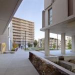 An extensive network of integrated shading and railing panels and highly efficient low-E glass on the western façades helps to moderate solar radiation, while exterior walkways on the south and west provide additional protection. Mechanical heating is supplied by a localized arrangement of individually controlled radiant panels. A PV array funded through a local utility lease agreement supplies 6 percent of the building’s total energy.