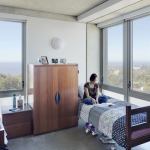 Located on the edge of the UC San Diego campus, overlooking the coastal cliffs of La Jolla, Calif., the C-shaped dwelling provides expansive views and offers student housing close to the core academic buildings. The project team of Philadelphia-based KieranTimberlake and locally based Swinerton Inc. capitalized on the site’s favorable environmental features, while moderating or eliminating undesirable ones. To optimize the cooling effect and negate the need for air conditioning, the building mass and window openings were shaped and sized to best capture ocean breezes based on landscape-scale CFD modeling. By relying on natural ventilation, project planners estimated that they saved 38 percent in energy consumption.