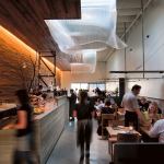 Be open to rethinking who gets windows. The design places the restaurant’s kitchen along a wall of windows instead of a banquet room. “In a traditional layout, we’d have done the opposite. Inverting it works quite well,” Aidlin says. “And there’s this special quality you can get from lack of light, just as you can get it from light. It’s about how you set up that contrast and how to make it meaningful.”