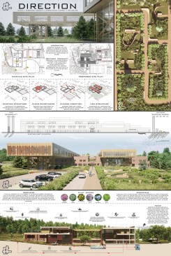Juror Comments: Direction is selected as a winning design for its adaptive reuse of an existing structure to create a combined school and community center. There is a clear architectural differentiation between existing structure and the new building as they work together to reach sustainable goals. The design has a solid integration model of environmental response and carbon conscious approach. There’s an elegance to the images that clearly show the designs connection to the landscape, which are quite compelling. Overall the project design will enhance an inhabitants senses, aspirations and well-being.