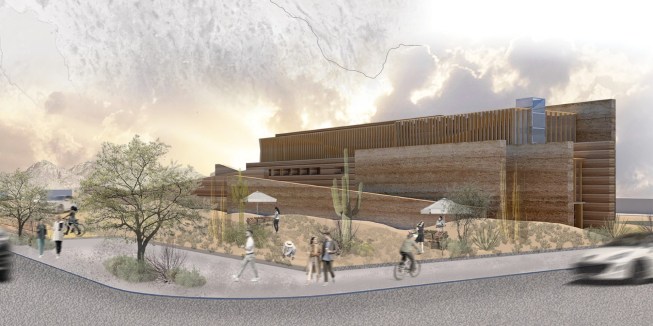 Juror Comments: Undefined Boundaries is a winning design for the versatility and adaptability in the use of rammed earth as an environmentally conscious material choice not often used to create an educational community center. The desert setting of the building is contextually appropriate for rammed earth construction with the incorporation of a passive strategy of thermal mass. The design has a clear tension of light and heavy clearly shown by the great use of scale and passive strategies.