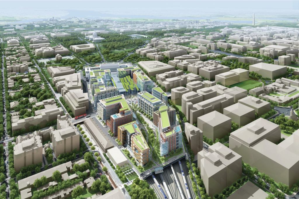 This plan calls for 9 million square feet of new construction within the footprint of Washington, D.C.’s existing Union Station and rail yard. By integrating new high-capacity and intermodal transit facilities with high-density, mixed-use development, as well as a network of public spaces, this plan promises to add a vibrant new neighborhood above the underground transit facility.