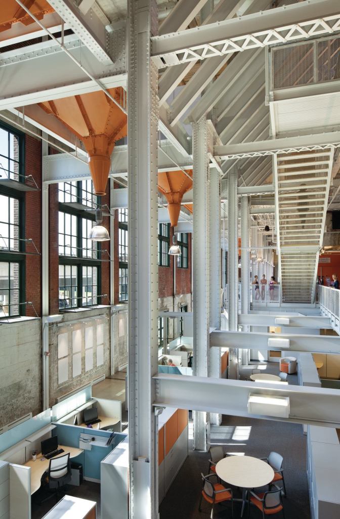 This transformation of the former Power House at Kansas City’s Union Station into a new home for the Kansas City Ballet epitomizes successful adaptive use of a problematic industrial building. The 52,000-square-foot former coal-burning plant, built in 1914 and listed in the National Register of Historic Places, required major reinforcement because chemicals and heat from the building’s industrial heyday had deteriorated structural elements. Generator rooms became dance studios, coal bunkers found new life as dressing rooms, and fire pits became usable common space, all while adhering to the U.S. Secretary of the Interior’s Standards for the Treatment of Historic Properties.