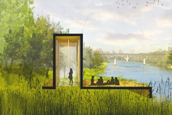 Jury comment: Tether as a title choice is terrific, because this project tethers the city and community to the landscape and research center to the Mississippi River. The ten measures are clear and incorporated into the submissions design as well as distinctly explained. The environmental restoration and renewal is a nice evolution to an under-utilized site.