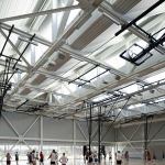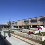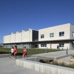 The building is oriented to maximize passive solar and wind opportunities, maintain the existing storm drainage flood path through the site, and emphasize a connection to the community. Operable windows, sun shades and orientation capitalizes on passive lighting and air movement. The building’s longest façades face north and south to maximize daylight and reduce heat gain. The gymnasiums feature sawtooth skylit roofs and the classroom roofs are sloped for future installation of solar panels. One hundred percent of the schools purchased electricity comes from renewable sources, and a 50kW wind turbine provides electricity.