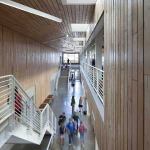 The site combines a number of ecological initiatives such as bioswales, constructed wetlands, restored wetlands, and native landscaping. Rainwater from the building is stored in six cisterns to meet irrigation needs during dry months, while the constructed wetlands treat wastewater before returning it to the water table. In addition, condensation from the school’s HVAC equipment (which is powered by a geothermal closed-loop ground-source heat pump) is captured for reuse as make-up water in the cooling towers.