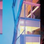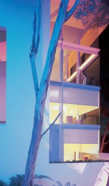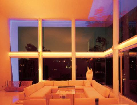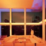 In the living room (see image gallery), AR111 lamps in combination with a linear array of white LEDs are integrated into the window mullion structure highlighting the horizontal and vertical members. The stairway (see image gallery), takes on sculptural qualities with its handrail of steel cables and amber LED covelight. With an acute awareness of how color and form interact, the designers have created a residential environment that is uniquely Mexican in its interpretation of house and home. A|L