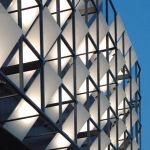“Outreach to communities near and far,” was the concept for the expansion and renovation of the Cincinnati Convention Center, which overlooks the nearby Ohio River. Using a “sculptural” super-graphic, the project succeeds in doing just that. A series of 10-foot-square white metal panels canted at an approximate 45-degree angle supported by an architectural superstructure on the building’s exterior (right), form the word “Cincinnati.” The panels are illuminated by 150W T6 metal halide lamps integrated into the architectural support structure, and the result is a new visual “interactive urban icon” for the city of Cincinnati (see image gallery).