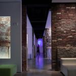 Entering the lounge, Salon D is directly in front of you. The gy… Entering the lounge, Salon D is directly in front of you. The gypsum frames float from the wall on a pillow of white light. Linear LED fixtures provide this effect and the fixture's slim profile kept the gypsum elements slim as well. In the center, an array of light, frames a video art projection. The LED sources allowed this effect to continue throughout the lounge and still meet the governing energy codes.