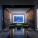 Salon A and B-the two remaining salons-are mirror images of each… Salon A and B-the two remaining salons-are mirror images of each other. Along each side, concealed track fixtures with infrared-coated PAR lamps, heighten the texture of the stonewalls.