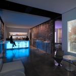 In the main bar, the longer expanse of backlit glass allows for … In the main bar, the longer expanse of backlit glass allows for more animated effects that are experienced in part or whole depending on the guest's location. Recessed MR16 downlights have been added for accent on the bar top and glass display.