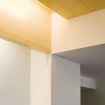 The designers developed the electric lighting scheme in relation to the project’s ample daylight. In the lobby, which also features a kitchen alcove, fluorescent covelights incorporated within architectural folds provide general illumination while concealing the sources. Similar fluorescent strips placed above the kitchen cabinetry work in tandem with an adjacent clerestory window, and fluorescent strips in a coat closet render the sheer curtain that conceals it luminous when closed. Dimmable MR16 flush-mounted downlights provide additional illumination for special functions.