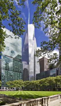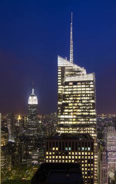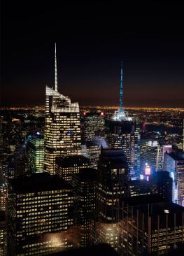 Located a block from Times Square, One Bryant Park’s lighting designers—Cline Bettridge Bernstein—had the unenviable task of creating a nighttime presence for this high-rise office tower, one that would not only make its mark on the New York skyline, but also adhere to the LEED Platinum building’s sustainable mandates.