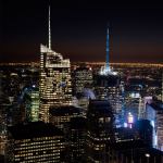 The lighting crescendoes with the illumination of the 300-foot-tall spire uplit with LEDs at each tier and DMX-controlled to allow for color changing and dynamic effects. One Bryant Park’s lighting design adds a contemporary lighting response to the city skyline without revealing the lighting acrobatics behind it.