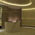 Situated on four floors of the Corinthia Hotel in London, ESPA Life offers just what it promises: a next-generation spa experience. The client asked G|A Design International to deliver an intimate, elegant, and decadent setting in which its guests could indulge in the luxuries of top-notch health treatments, personal training, and grooming. The firm responded with a layered approach, crafting four distinct experiences, one for each floor. A polished marble staircase connects each of the spa’s levels and is lit with linear LED fixtures. As the spa descends from the first floor to the subterranean levels, the finishes become darker. Lighting Design International’s challenge was to develop complementary lighting schemes for each of the project’s varying settings.