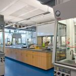 White ceilings and concealed services in teaching labs allow pendant lights to downlight benches and also provide indirect light for the whiteboards.
