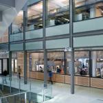 A view of the atrium. Downlights in custom-metal ceiling panels …