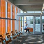 During most days, the daylighting is sufficient to keep 70 percent of the electric lights dimmed all the way down, a factor that contributed to the project’s LEED Gold certification.