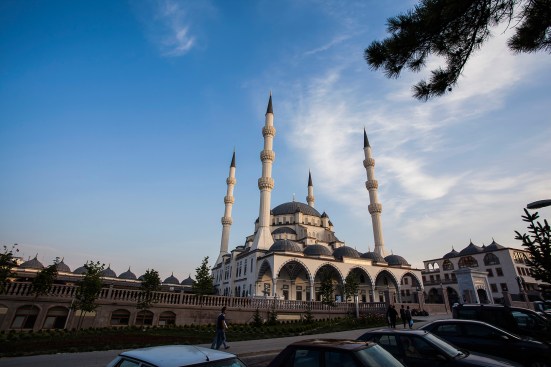 A new mosque has risen at the center of the burgeoning city of Kırıkkale, the capital of Turkey’s Central Anatolia region. Located nearly 50 miles east of Ankara, but still in the western half of the country, the city is home to a population of almost 200,000. The Kırıkkale Merkez Nur Mosque, which was designed by Turkish architect Necip Dinç and completed in 2015, accommodates up to 10,000 worshipers at a time. Its design borrows from 16th century Ottoman influences, such as Mimar Sinan’s Selimiye Mosque across the Bosphorus in Edirne, with a central dome that reaches 105 feet high and four 200-foot-tall minarets at its outlying edges. Eight carrier columns radiate from the central dome to distribute the structural load outward. Five additional domes shelter the entrance, and a dome-covered portico extends along an east–west axis to provide shaded access to the mosque, as well as a buffer between city and courtyard.