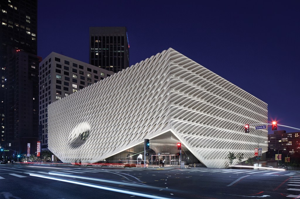 Los Angeles’ downtown cultural hub on Grand Avenue gained a marquee building in 2015 with the opening of The Broad, a contemporary museum designed to house and showcase the 2,000-piece Broad art collection assembled by real estate moguls Eli and Edythe Broad. Designed by New York–based Diller Scofidio + Renfro with the local office of architectural firm Gensler, The Broad was conceived as two main programmatic elements, gallery and archive (or “vault”), draped with a “veil” of perforated fiber-reinforced concrete.