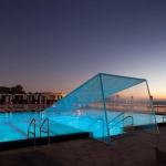 The pool stair is encased in resin and allows guests to walk bac… The pool stair is encased in resin and allows guests to walk back down into the lobby. Given the lighting restrictions—the adjacent beach is a sea turtle breeding ground—the pool and stair enclosure are the primary nighttime illuminated features. The lighting is intended to evoke the ethereal sense of walking through water.