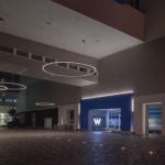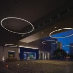 Illuminated rings add scale to the 40-foot-tall porte-cochère e… Illuminated rings add scale to the 40-foot-tall porte-cochère entry. Recessed in-grade luminaires serve as subtle lane dividers.
