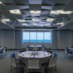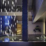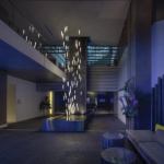 Low ambient light levels and the sound of falling water greets g… Low ambient light levels and the sound of falling water greets guests as they enter the hotel. The “flying” candle fixtures are designed as a sculptural art element.