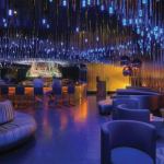 The hotel’s Whiskey Blue bar. Brass tubes suspended from the c… The hotel’s Whiskey Blue bar. Brass tubes suspended from the ceiling and outfitted with blue LEDs create a dramatic effect.