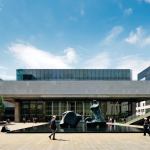 Though its campus houses many of New York’s most preeminent performing arts institutions, Lincoln Center felt it was still missing a small theater amenable to emerging playwrights and more intimate performances. But it was also missing something else: available space to build such a theater. The dense Manhattan neighborhood wouldn’t allow any give in the campus footprint, and though there are open plazas, these have become canonical urban areas in their own right. In the end, H3 Hardy Collaboration Architecture settled on an unlikely solution: perching the new 23,000-square-foot Claire Tow Theater, home to Lincoln Center Theater LCT3, atop the Eero Saarinen-designed Lincoln Center Theater.