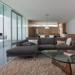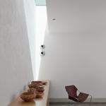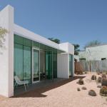The sky can be glimpsed from most rooms either through slit skylights or, in the cases of the kitchen, living room, and master bedroom, floor-to-ceiling glass. These openings allow the house’s white-cement-plaster walls to capture the ever-changing hues of the Sonoran sun. High-performance, low-E-coated IGUs and generous overhangs protect the interior in the summer, while allowing the floors to be passively warmed in the winter. Tankless hot water, prewiring for photovoltaic panels, and rainwater collection are also part of the suite of resource-conserving technologies.