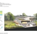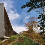 To that end, the client worked with FXFowle Architects to integrate the building into the topography and ecosystem, after choosing a site on the northern edge of a clearing surrounded by deciduous trees. The center uses passive strategies, such as solar orientation and self-shading, to minimize energy use. A wood screen and concrete overhang shade the east façade from the summer sun. A double-glazed, low-E curtain wall minimizes thermal loss and solar gain. Juror Bill Valentine admired several features: “It’s unbelievably simple … and it just nestled right into the land. It’s very open and unassuming.”