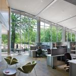 The building’s elongated form strengthens the connection between occupants and the landscape. Conference rooms and informal meeting spaces are located along the perimeter and open onto outdoor terraces on the upper floors. “And the detailing is very elegant,” juror Donna Robertson added, noting “the edge of the stairs and the way they step down, this inside-outside move of the terracing.” The center achieved LEED Gold certification.