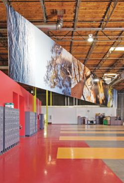 Lehrer Architects — A facility to prepare, distribute, and store the elections materials for all 5,000 of Los Angeles’ voting precincts, the County Clerk Elections Operations Center is located in an existing 11,000-square-foot warehouse in a suburban office park, a building type that juror Marion Weiss calls “deadly.” The design team at Lehrer Architects took a novel approach, using supergraphics—bold floor stripes in pop colors and large-format photographs of a beach at sunset and other natural settings—to enliven the massive shelving units that hold boxes of ballots and voter guides and to lend a sense of place to the cavernous room. “It’s a reinvention of a tired type,” juror Ellen Dunham-Jones said—and one done for an incredibly low $50-per-square-foot budget. “I like that it’s really inexpensive stuff,” said Weiss, while juror Ralph Johnson appreciated the design team’s “strategy of doing more with less.”