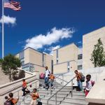 In New York, space is always at a premium. So when faced with high demand for classrooms, the New York City Department of Education turned to an old rail yard—17 to 30 feet below grade—for additional space. Perkins Eastman designed the $137 million Mott Haven Campus to accommodate four distinct schools on the brownfield site, clustered around a shared 600-seat performing arts space and sports field. Each school (all of which have grades 9–12, and one of which also has K–4 students) has its own identity, with a separate color scheme, entry, classrooms, and dining facilities.