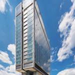 The buildingâs monumentality comes from a massive structural system that raises the tower 57 feet off the ground: a concrete pier (5 feet thick by 50 feet wide and 60 feet tall) paired with five 2-foot-by-6-foot columns. Fourteen-foot-deep steel trusses allow the hotel to straddle the High Line, thanks to a floating easement.