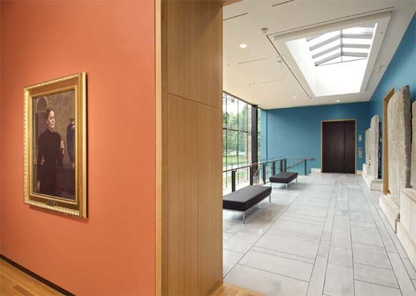 The original structure was not built with daylight in mind. There were a total of 10 windows in the walls of the building. Since little could be done to change that, other ways were found to incorporate daylight. “We implemented a skylight system for the gallery spaces so visitors could get the benefits of changes in mood that daylighting affords without allowing damaging ultraviolet light into the spaces,” Ello says. “We hadto make sure we had the proper films and UV filters on the glass to control the daylight, but we wanted to make sure the spaces could benefit from natural lighting.” Clerestory windows in the below-grade areas ensure that even the subterranean galleries receive some daylight.