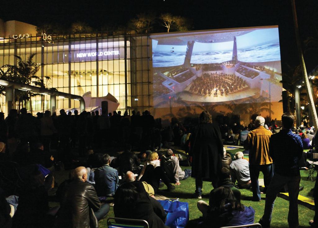 But it’s the public park outside the New World Center that generated the most buzz when the venue opened last January. Dubbed the Miami Soundscape Park and designed by Florida firm Pro Sound & Video and Dutch landscape architecture firm West 8, the 2.5-acre park allows people outside the center to enjoy concerts taking place inside. In the concert hall, high-definition cameras capture video that is then switched and routed via fiber-optic cabling to four massive 35,000-lumen Christie projectors in the park. Images from the four projectors are blended together and then splashed across a 7,000-square-foot wall.