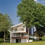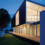 A wooded point of land on the shore of Virginia’s Lake Anna presented architect Robert M. Gurney and project designer Claire L. Andreas with the perfect stage for this strikingly sculptural weekend retreat. Simple and strong in its geometry and materials, the building uses the site’s parklike setting as a foil for, in Gurney’s words, “something rigorous … ordered and orderly.”